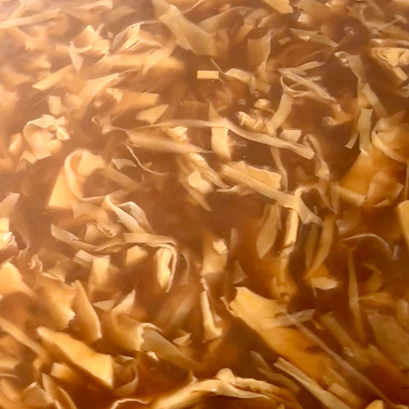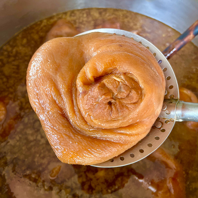 用甘蔗鋪底醬滷的腿庫,搭配入味且脆口的筍乾,鹹香下飯。