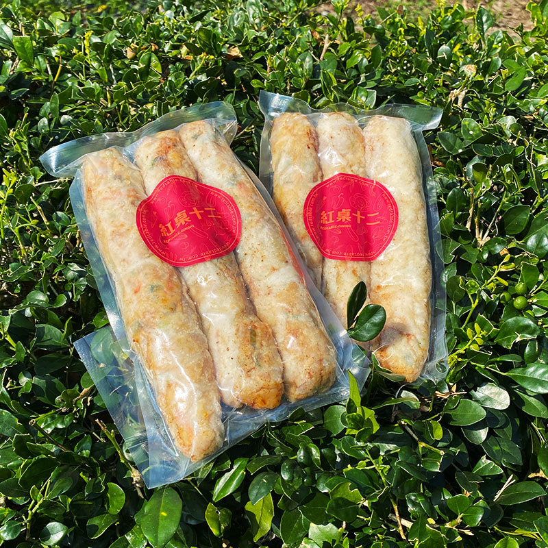 成份肉絲、魚漿、青蔥、芹菜、洋蔥、荸薺、蒜頭、紅蘿蔔、雞蛋、豬網紗、麵粉、胡椒粉、糖、太白粉。